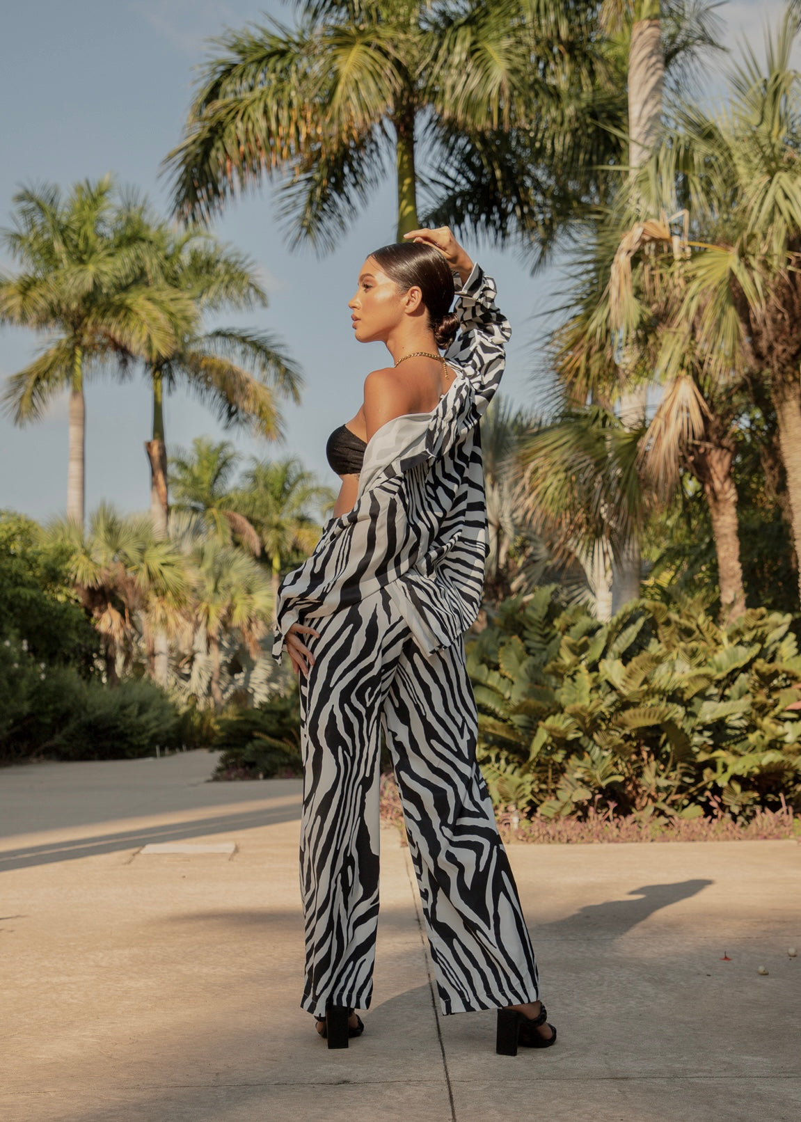 Conjunto zebra print de camisa oversize y pantalón ancho con resorte