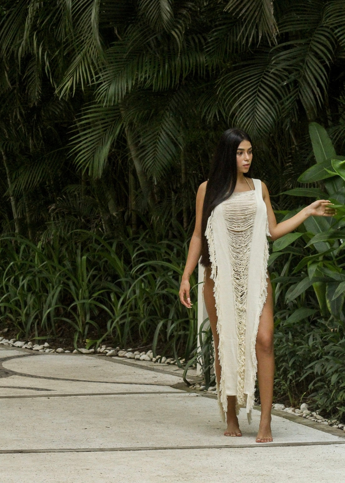 Cover up sin mangas no costados, con detalles en deshilado en frente y detrás.
