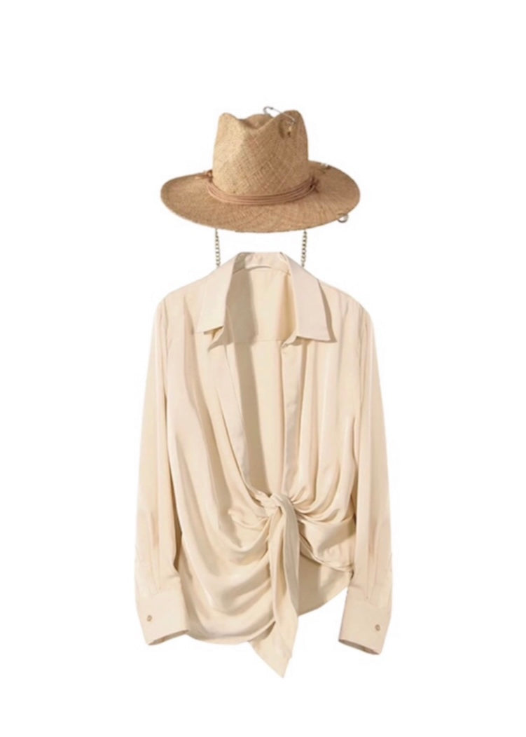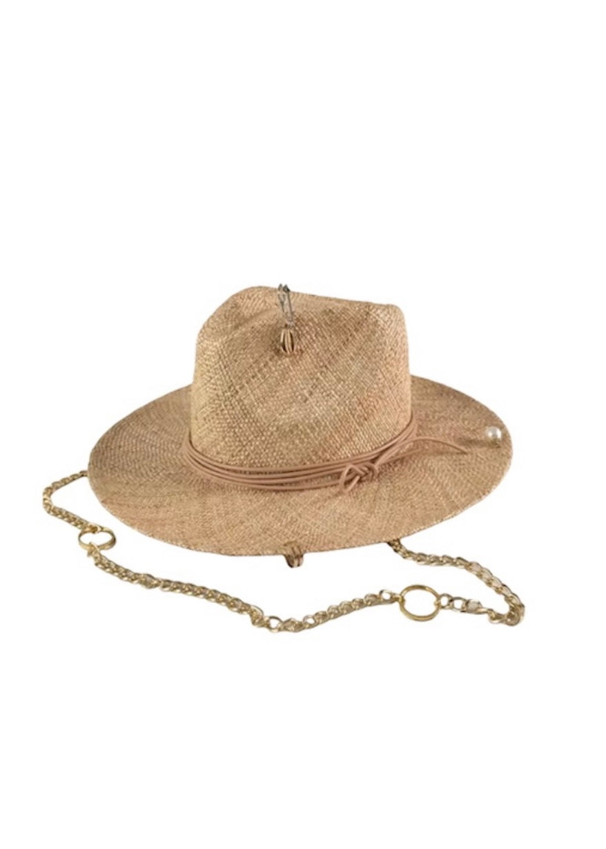 Sombrero color arena, con cadena dorada