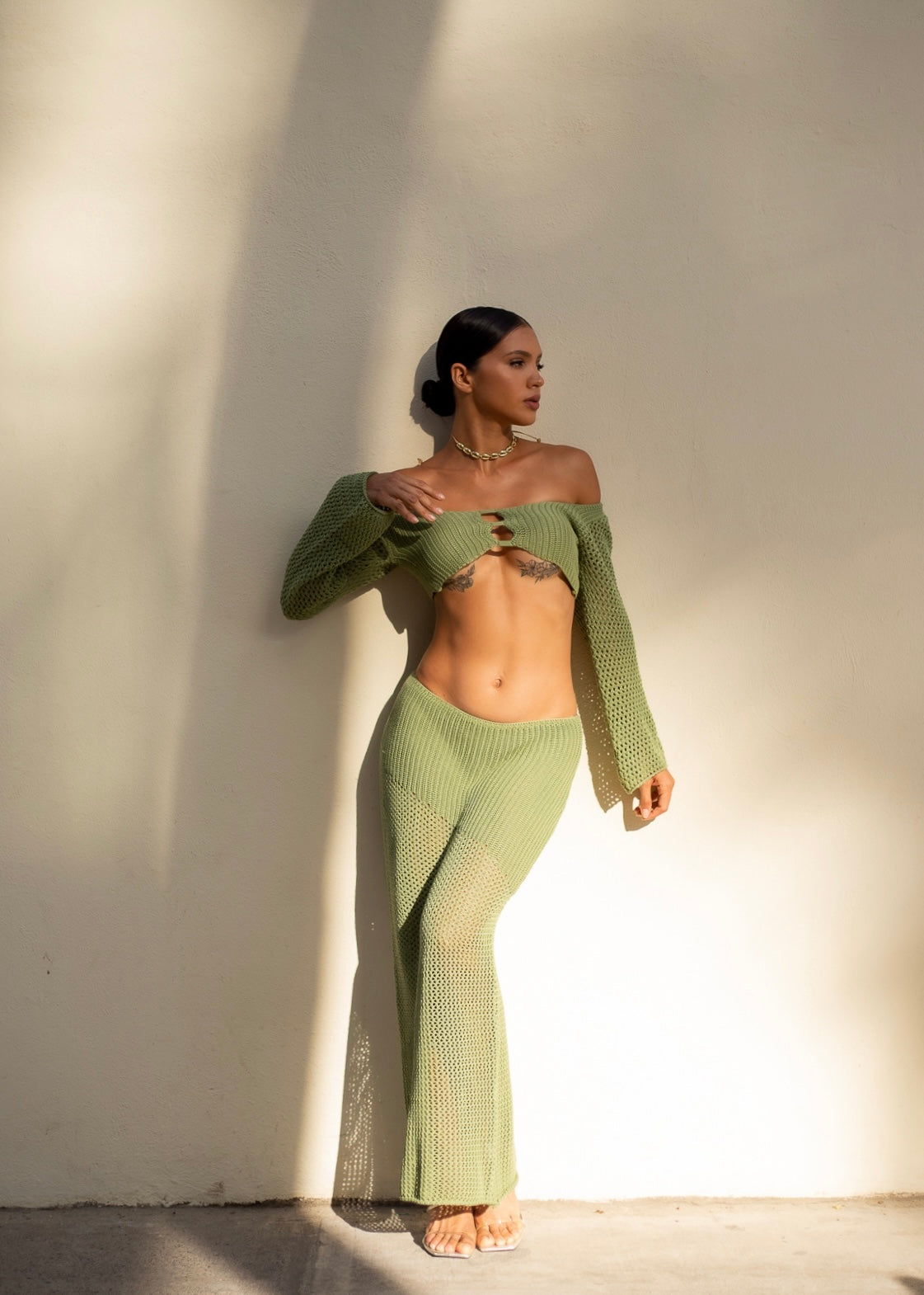 conjunto MÍA de punto disponible en 3 colores top manga larga y falda larga